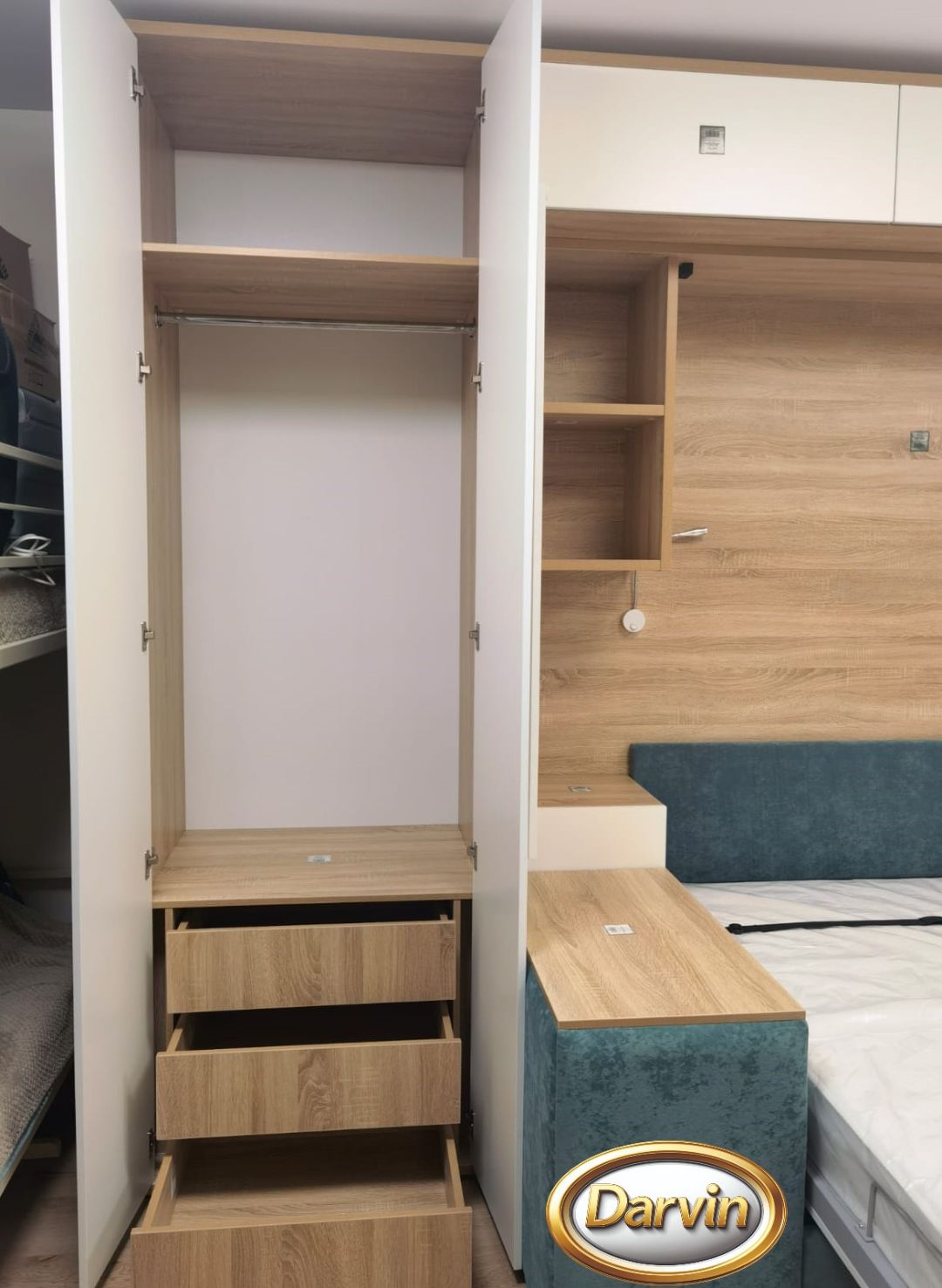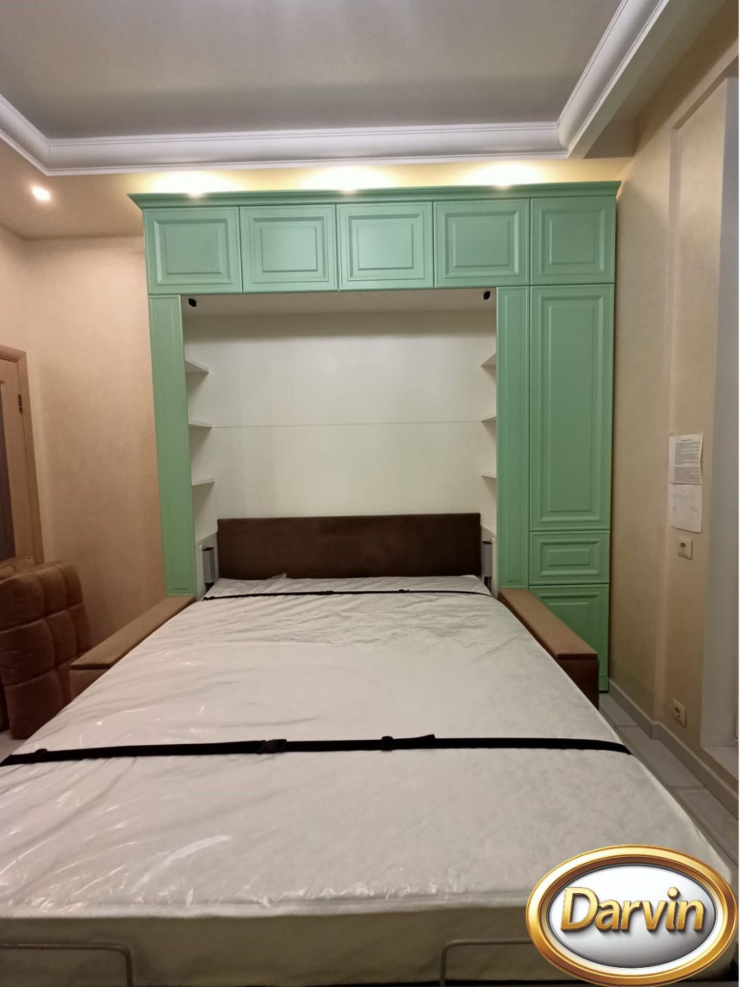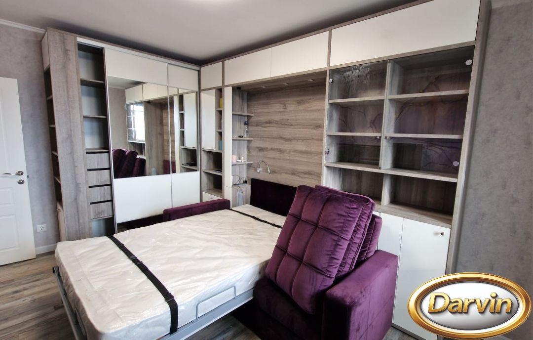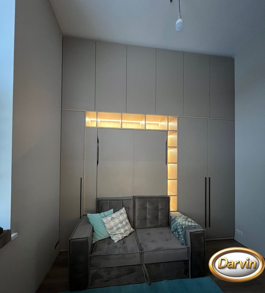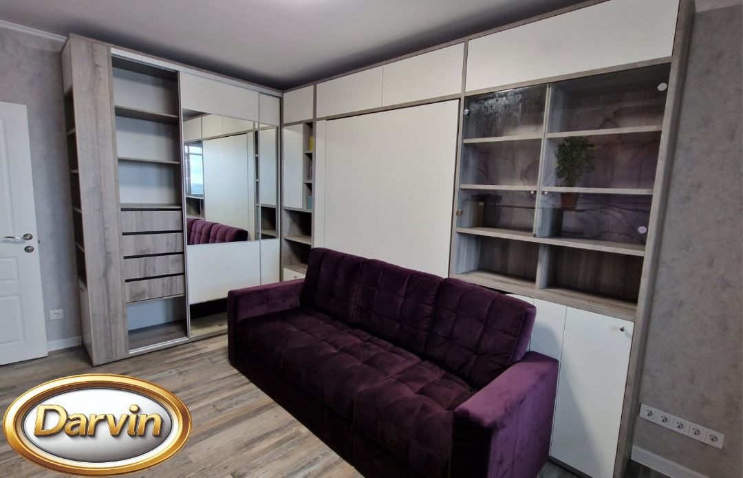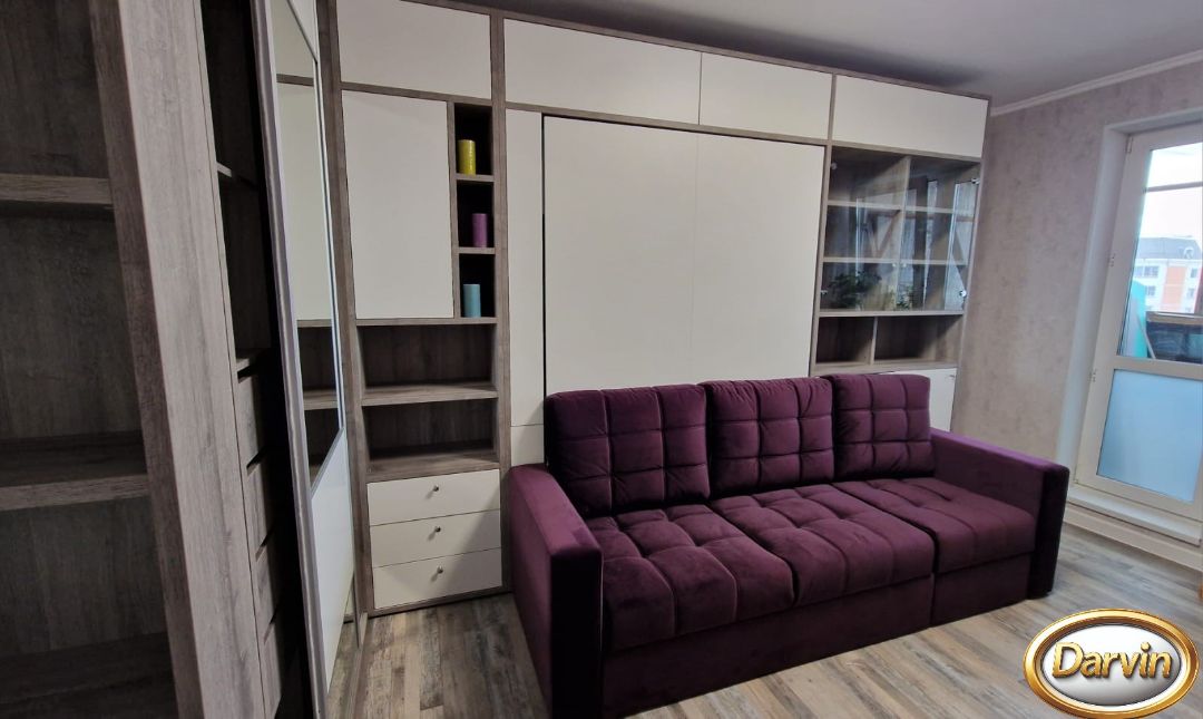 Шкаф-кровать Кливия с диваном фасад МДФ с фрезеровкой и модулями