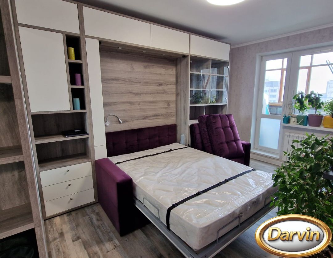 Шкаф-кровать Крокус с широким диваном и мод