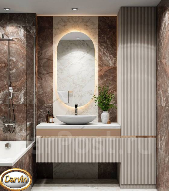 Ванная комната это помещение с повышенной влажностью, поэтому мы используем материалы с влагозащищёнными свойствами. Раковины и столешницы изготавливаем из искусственного камня.