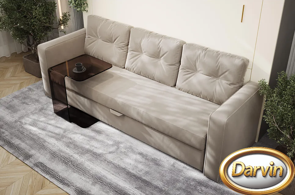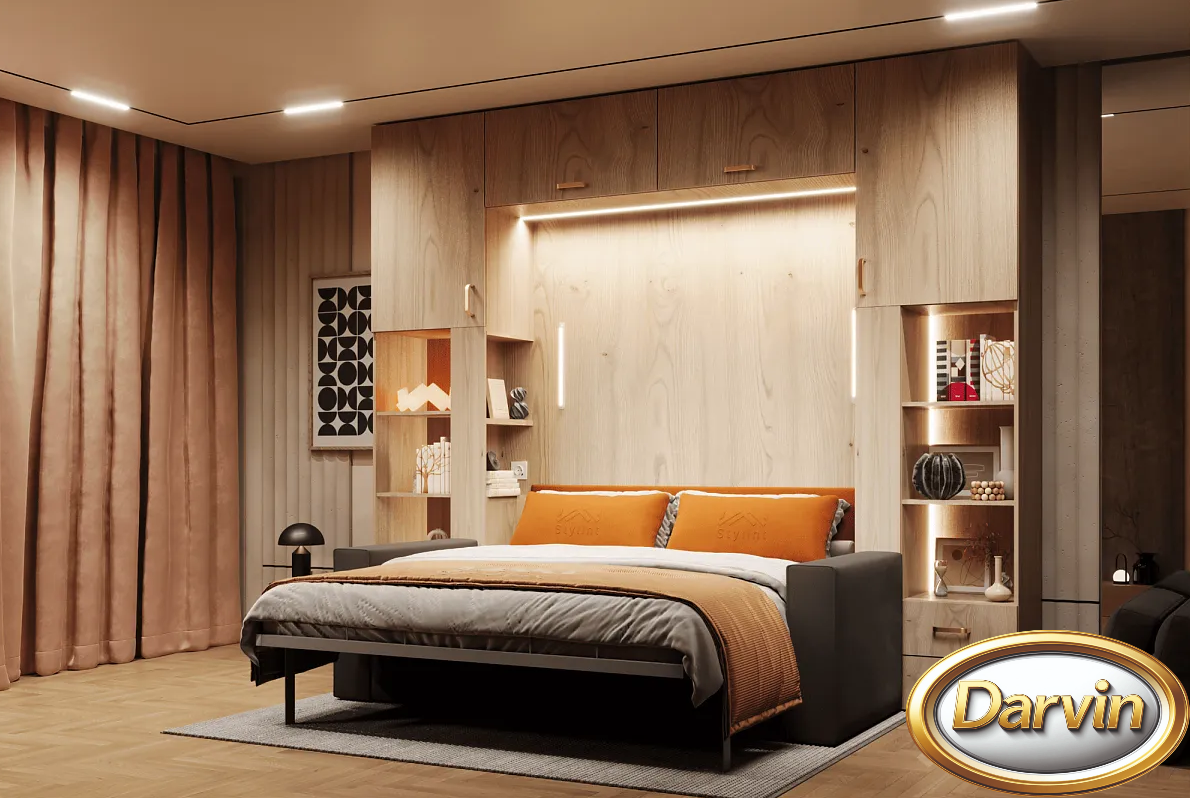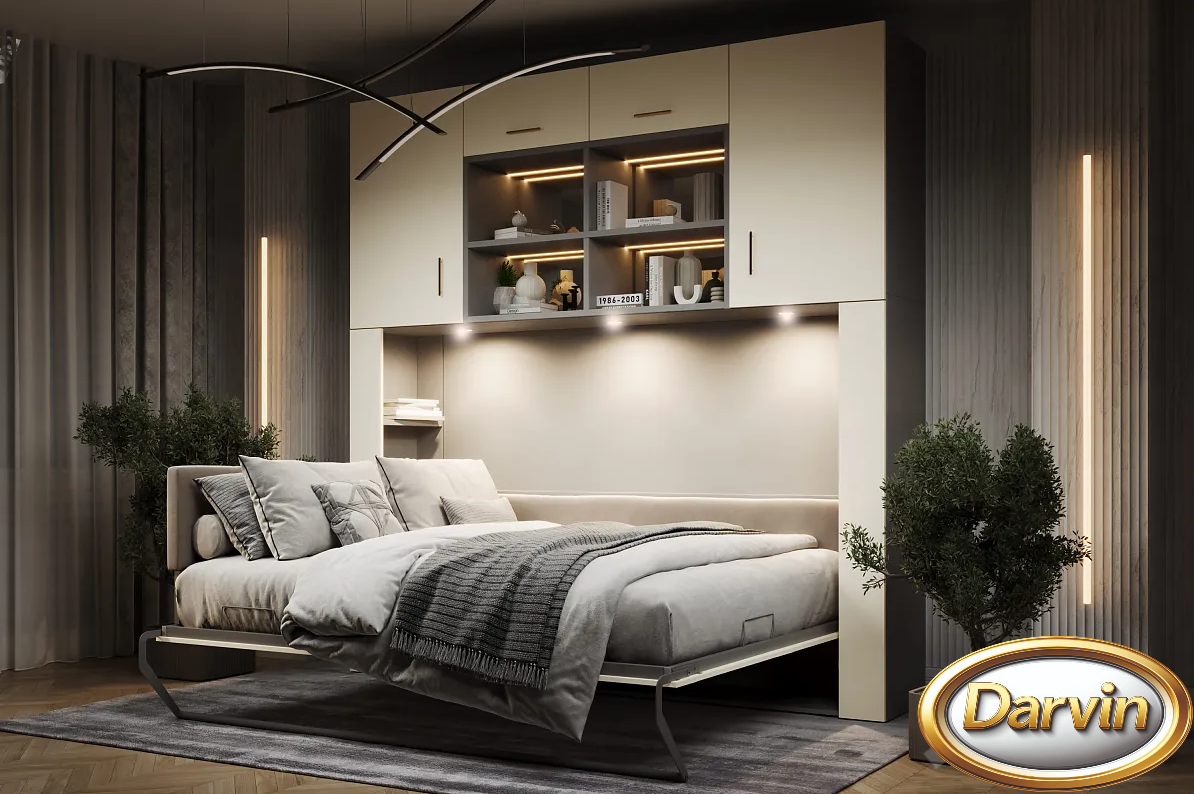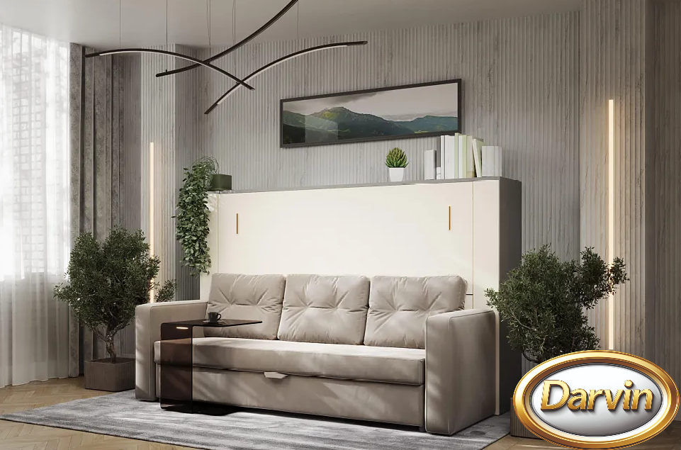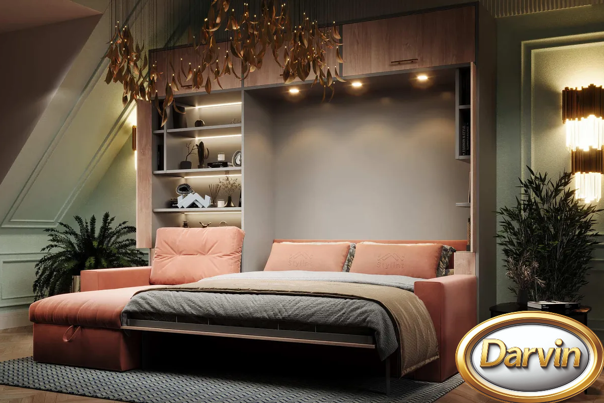 Если площадь комнаты невелика, трансформируемая мебель идеально впишется в ее пространство. Подобные конструкции не только компактны, но и многофункциональны, что является несомненным преимуществом для малогабаритных квартир. Но это не значит, что возможности выдвижных или откидных кроватей-трансформеров не пригодятся владельцам просторного жилья. Эти предметы мебели позволят организовать несколько дополнительных спальных мест для комфортного размещения гостей. Потребители могут подобрать и купить трансформер диван-кровать, где оба эти предмета мебели будут скомпонованы в одну конструкцию. Современные варианты изделий представляют собой полноценную кровать с матрасом. В дневное время спальное место поднимается, частично прячась в стену или в шкаф, частично формируя спинку дивана. В этом случае диван получается стационарным, он не раскладывается. За счет использования дополнительных подушек повышается комфорт эксплуатации этого предмета мебели. В ночное время они убираются в специальный ящик для хранения, который прячется под сиденьем дивана. Подлокотники дивана также могут быть изготовлены с различным функционалом - бельевой ящик, отделение для хранения пульта для телевизора, встроенная розетка и зарядное устройство для телефона, бутылочница и бар, а также подлокотник может трансформироваться в журнальный столик и столик для ноутбука.